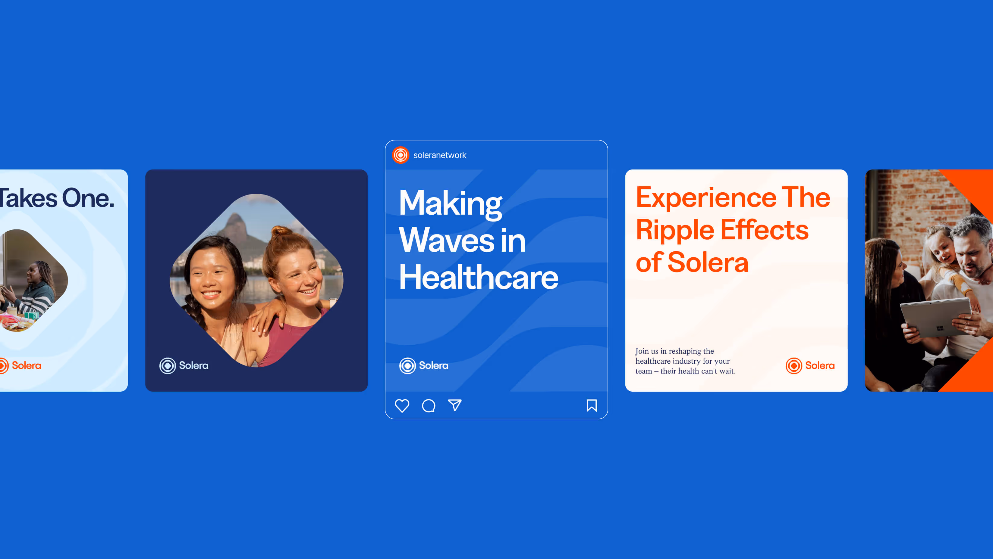 The key to Solera’s approach is simplicity, so we anchored the brand around the idea that "it only takes one platform" to access a comprehensive digital health ecosystem with high-quality solutions and lower costs. We positioned Solera as the trusted guide on this journey, combining bold innovation with the reliability users need. This insight shaped a creative look and feel that confidently maintains that balance of pioneering and dependable.