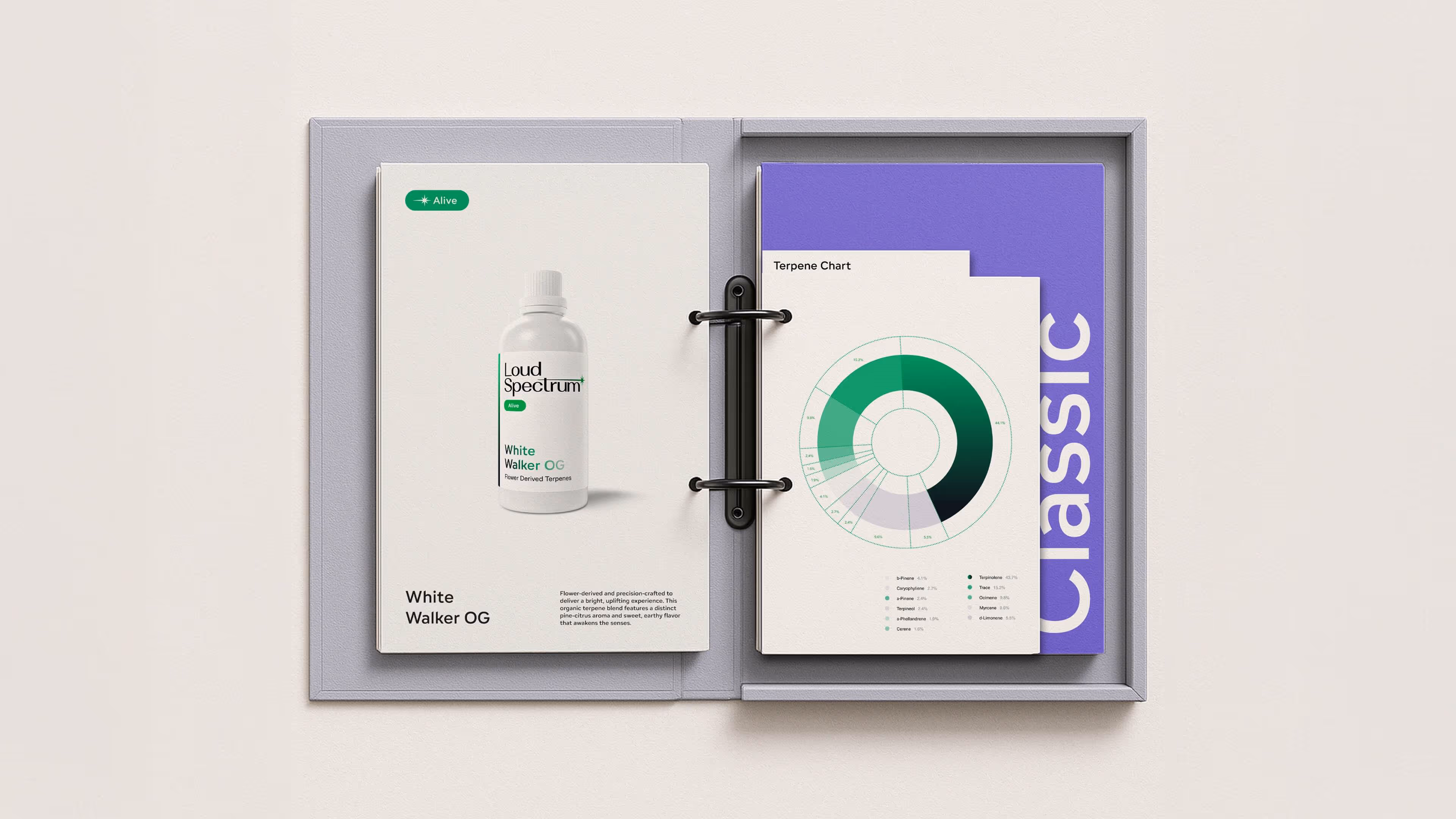 Inspired by quasars—the brightest, most energetic objects in the universe— the Loud Spectrum logo system embodies scale, intensity, and discovery, symbolizing molecular innovation with an expanding yet precise form that nods to their scientific expertise.